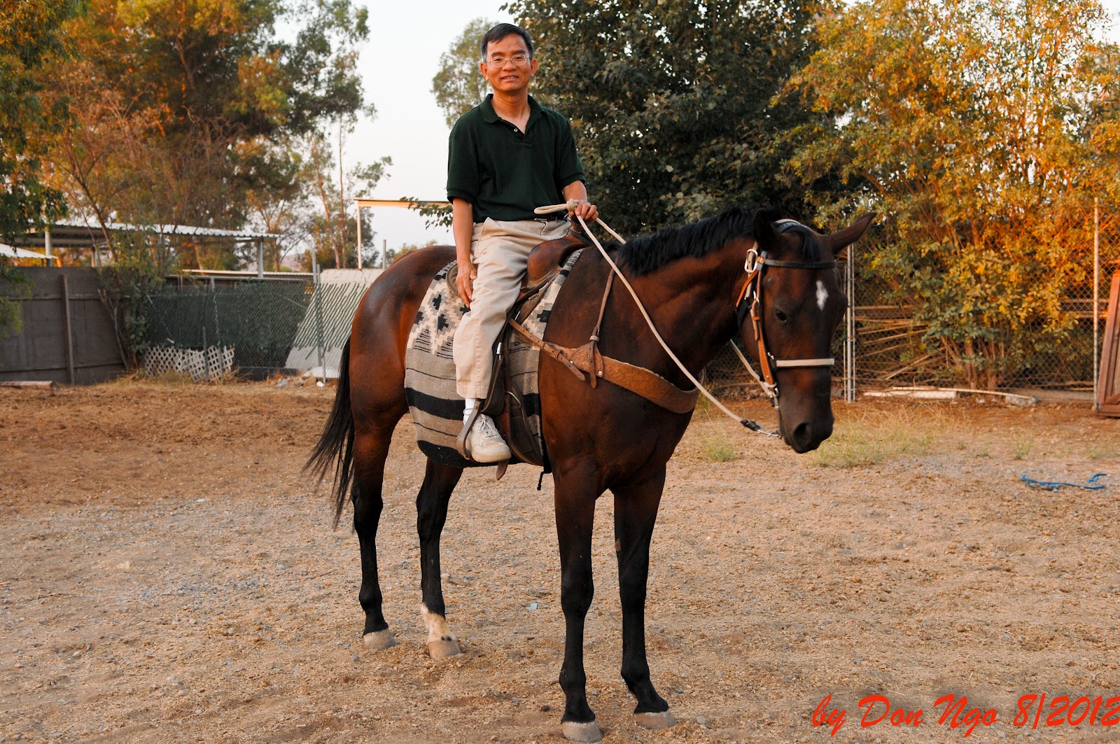 Đêm Thứ Bảy 4 Aug 2012, khi đến nhà anh Thành sau 11:30PM, tôi đã ngồi trò chuyện với anh Thành. Trong câu chuyện anh Thành có đề nghị ngày mai Chủ Nhật anh Thành sẽ hướng dẫn tôi tập cởi ngựa cho biết khi đã đến gia trang của anh có 2 con ngựa ở sau vườn. Tôi hơi ớn vì sợ không biết điều khiển con ngựa thì bị ngựa đá chắc “sống không nổi” nên hỏi anh Thành: